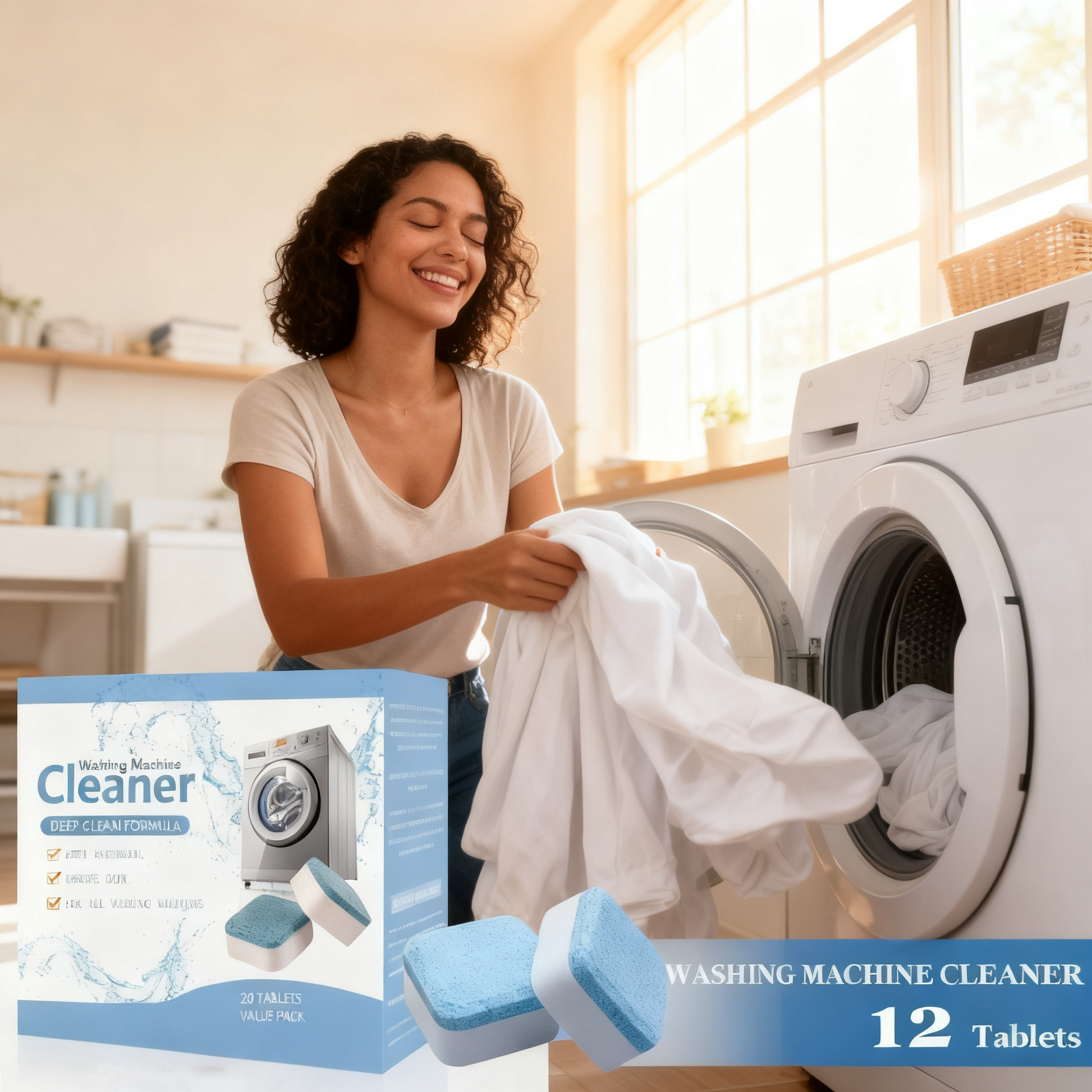 (12PCS) Caja pastillas lavadora - Limpia y desinfecta tu lavadora